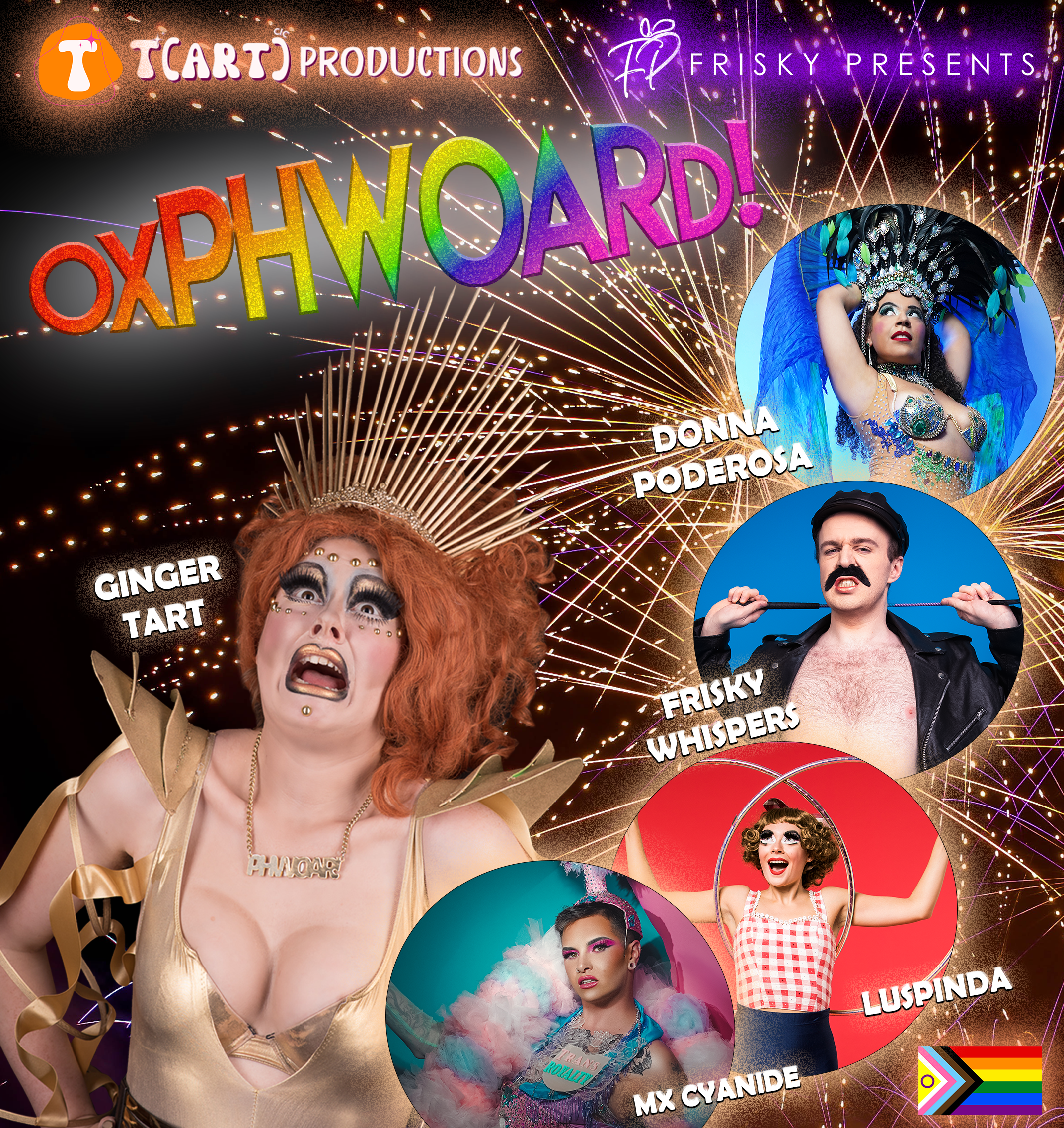 Featuring some of the best in the UK burlesque and drag scene, prepare for a glittering array of lip syncing, striptease, and comedy, with a dash of circus to boot as we celebrate Pride the best possible way. OxPHWOARd’s resident weirdos - comedy drag queen Ginger Tart and boylesque tease Frisky Whispers - are joined by some stellar performers